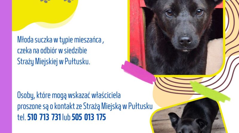 Osoby, które mogą pomóc w ustaleniu właściciela lub rozpoznają psa, proszone są o kontakt ze Strażą Miejską w Pułtusku: