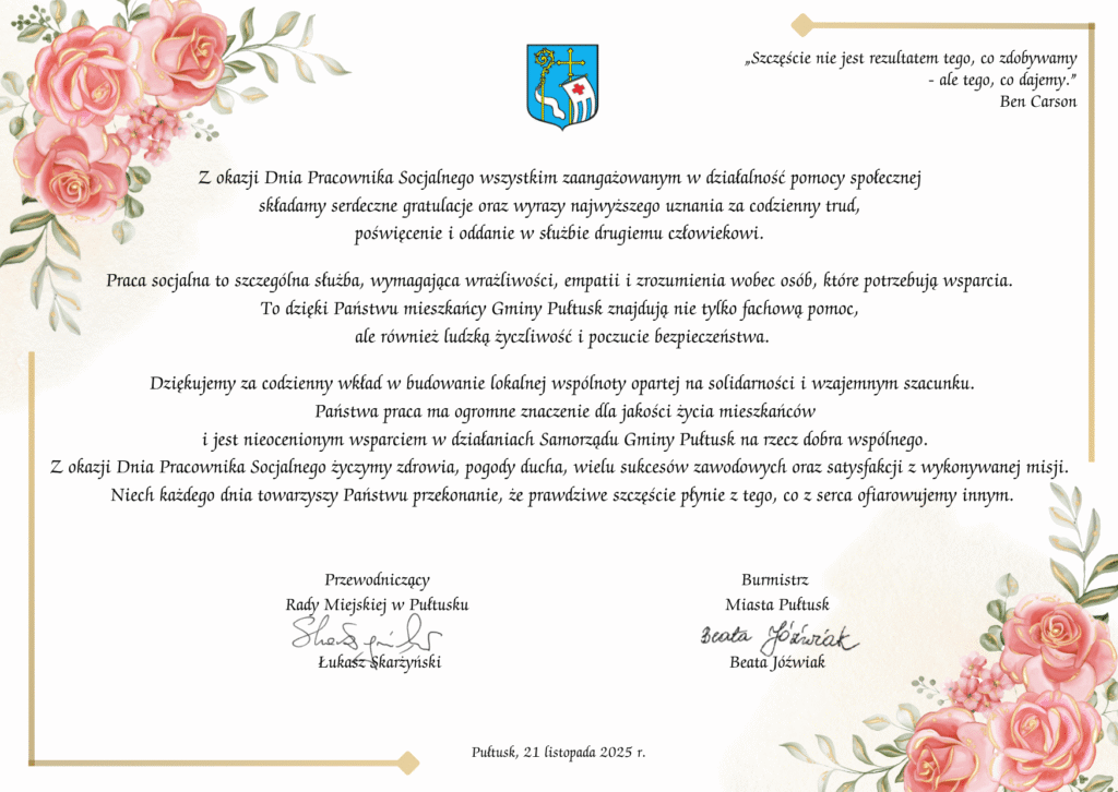 Z okazji Dnia Pracownika Socjalnego wszystkim zaangażowanym