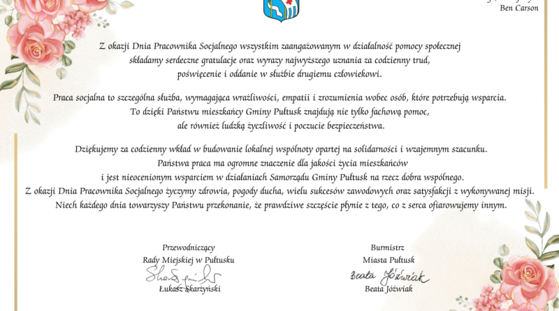 w działalność pomocy społecznej składamy serdeczne gratulacje